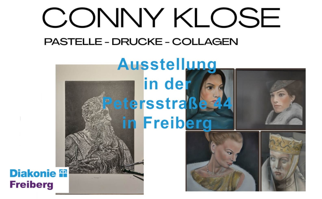 Hiermit möchten wir Sie herzlich zur Vernissage für die Ausstellung „Pastelle – Drucke – Collagen“ von Conny Klose in unserem Treppenhaus Petersstraße 44 in Freiberg recht herzlich einladen.